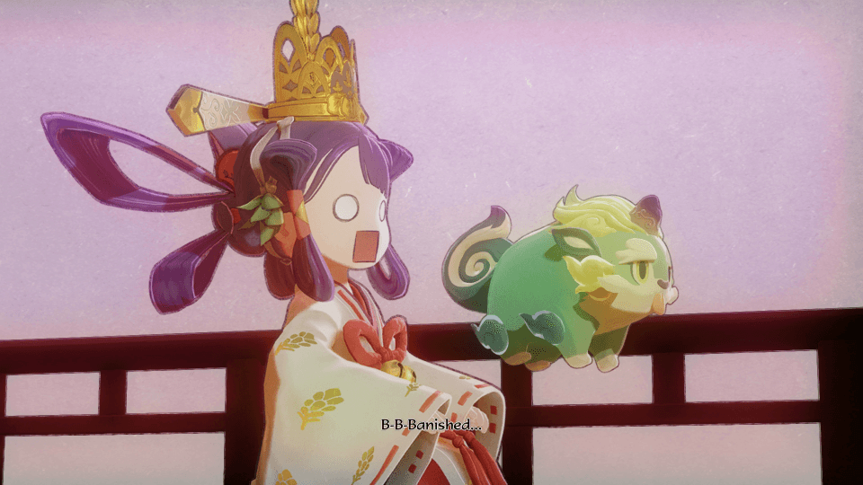All of these humans ended up on the floating bridge for the same reason: another human called Ishimaru. Ishimaru took over a bandit group from Kaimaru’s father, by killing him. Dabbling into the slave trade, he acquired Yui, Kinta and Myrthe. Fleeing for their lives is how they all met Sakuna, when she kicked Ishimaru straight off of the floating bridge of heaven.